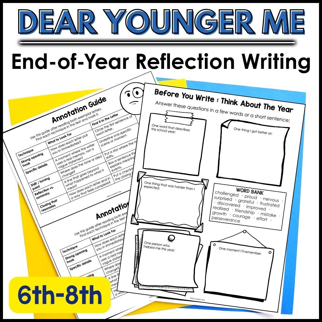 With this engaging “Dear Younger Me” letter project, students reflect on the past year. This resource is designed specifically for grades 6–8 and walks students step-by-step through crafting a thoughtful letter to their past selves.